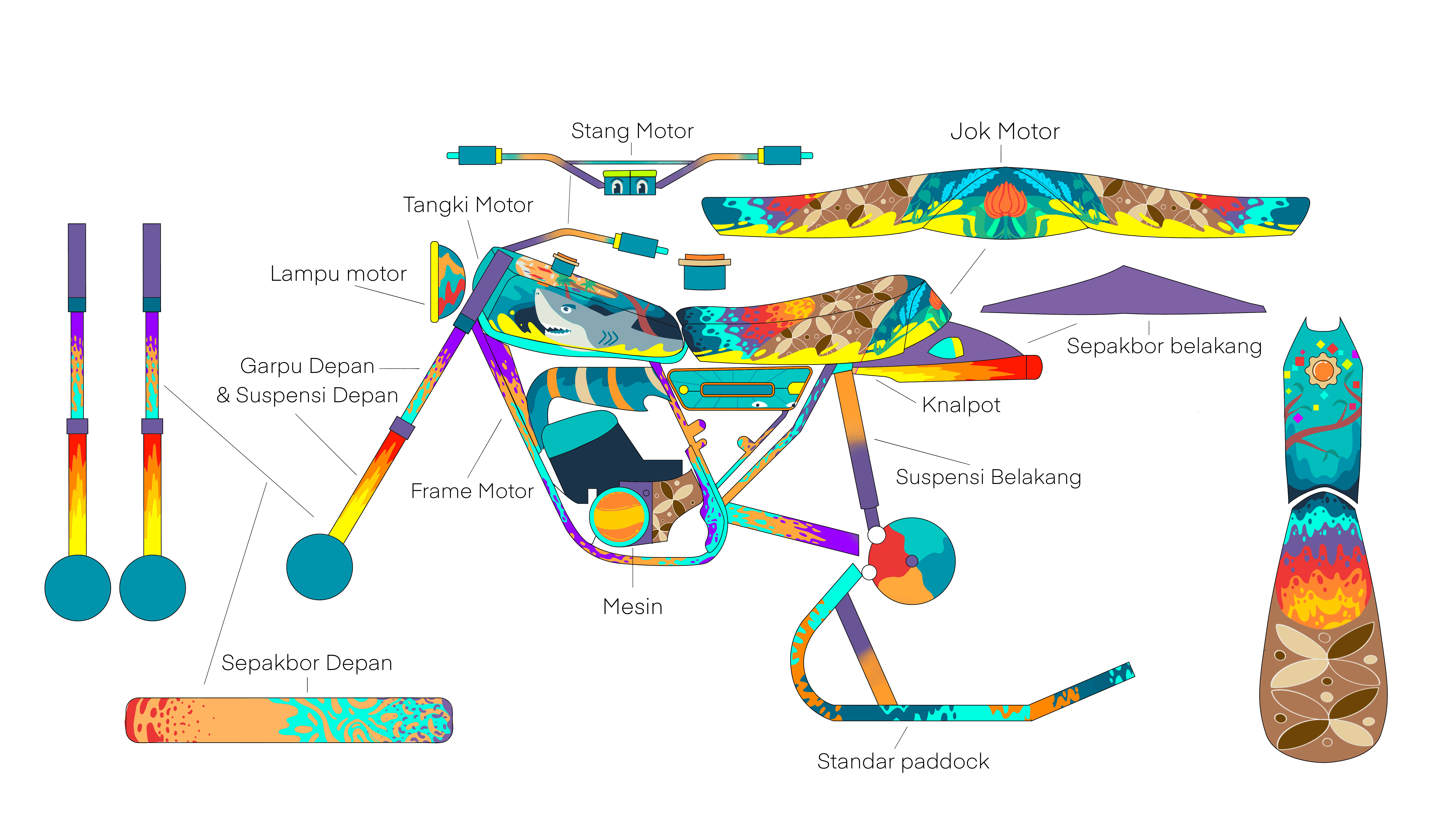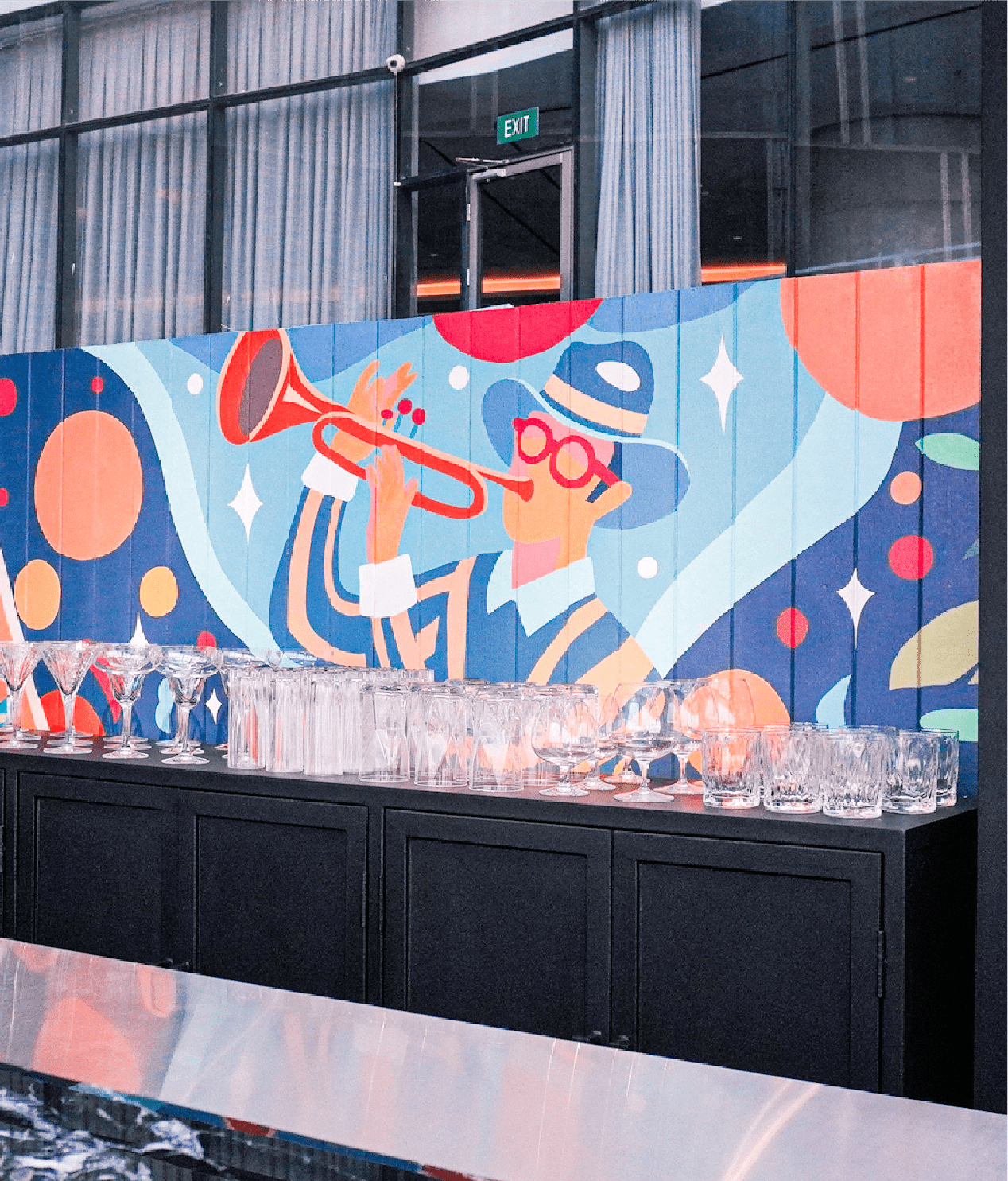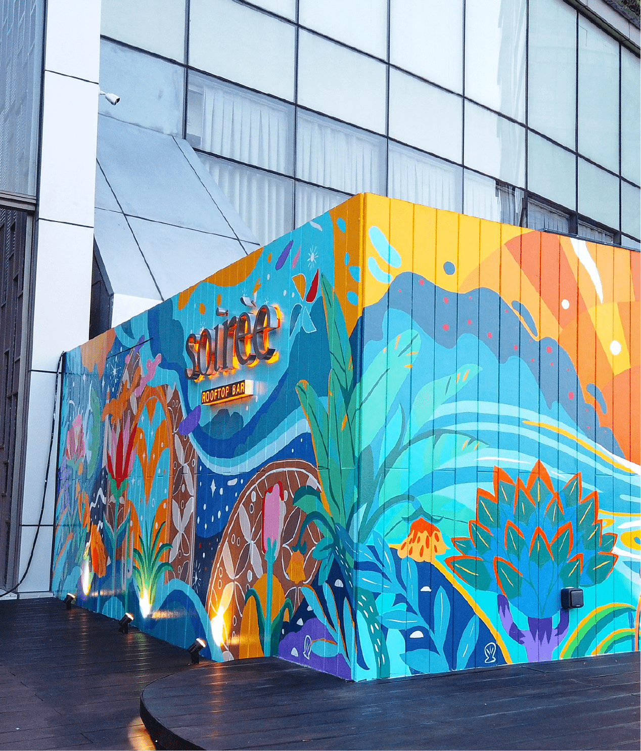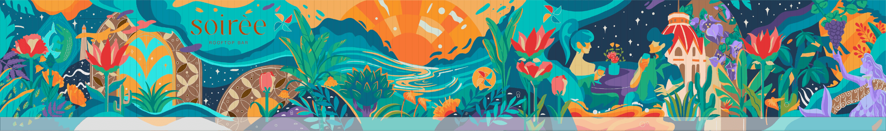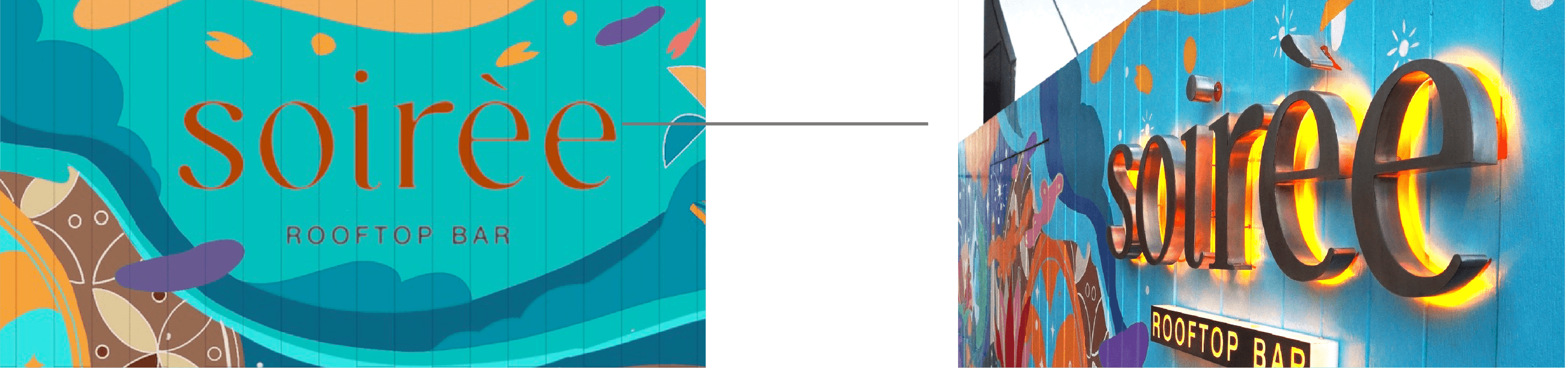 Soiree seringkali diatur secara formal dan memiliki atmosfer yang santai dan elegan. Sebab itu pemilihan color pallete sesuai dengan atmosfer sore menjelang malam dan pemilihan warna yang tidak terlalu mencolok sehingga menambah kesan elegan.
